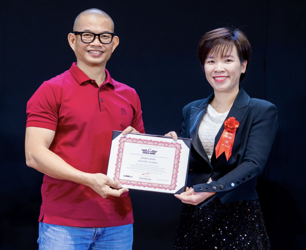 Trong quá trình học tập và rèn luyện tại cộng đồng Eagle Camp của thầy Phạm Thành Long, chị bắt đầu nhìn lại chính mình. Chị không còn ôm việc, không còn chứng minh, không còn chạy theo kết quả ngắn hạn. Thay vào đó, chị xây dựng hệ thống, quy trình, đội nhóm và kỷ luật rõ ràng.